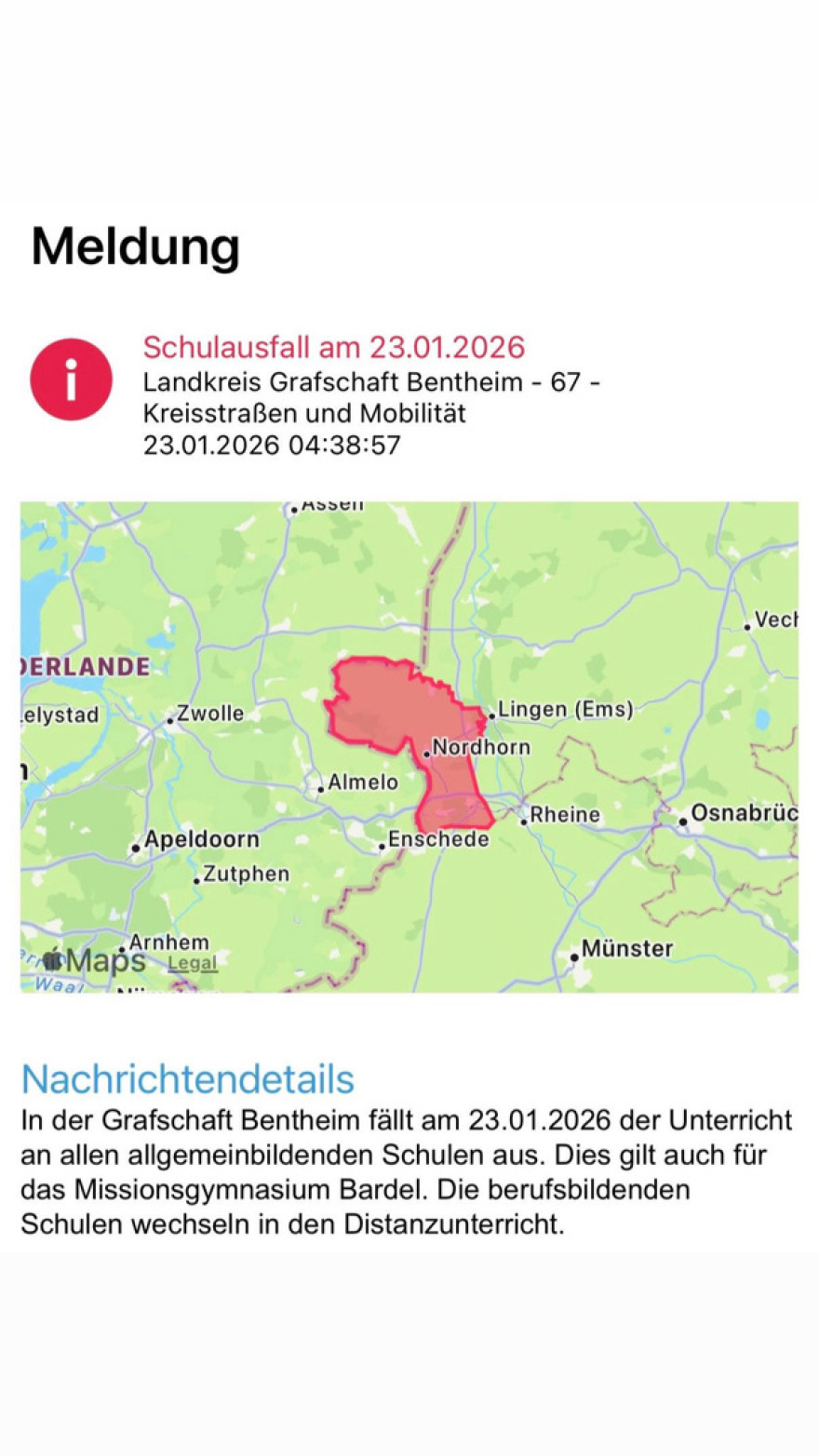 am Freitag fällt in der Grafschaft Bentheim die Schule aus. Wir bieten von 8.00 Uhr bis 12.50 Uhr eine Notbetreuung an. Bitte informieren Sie auch andere Familien,
