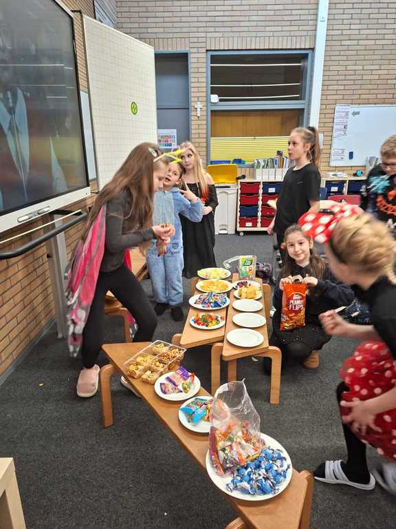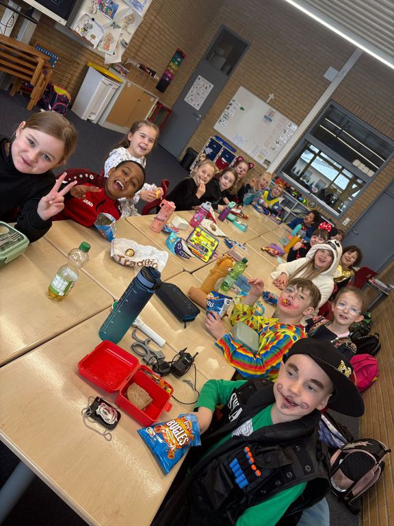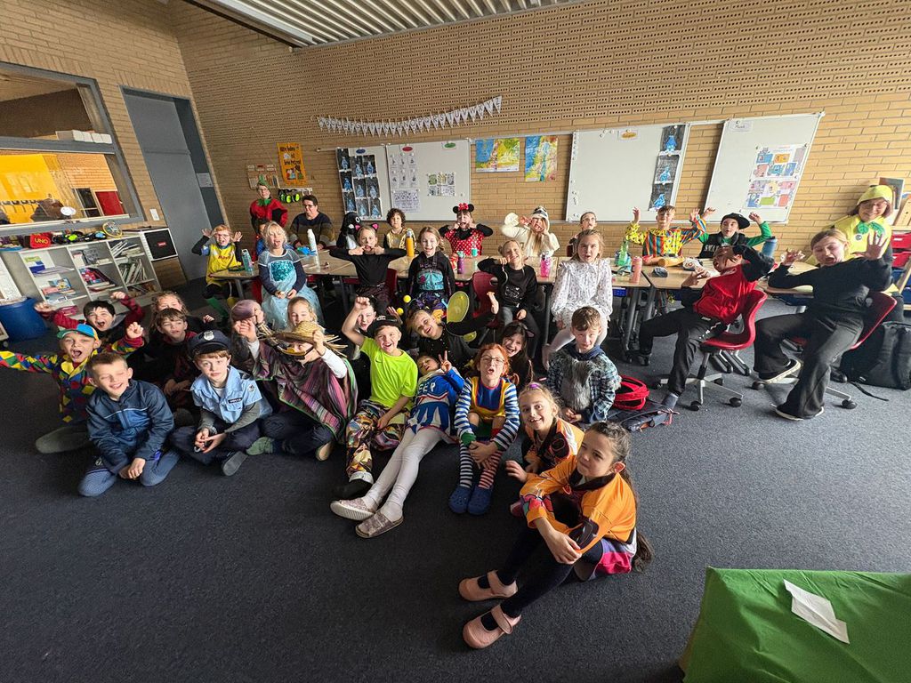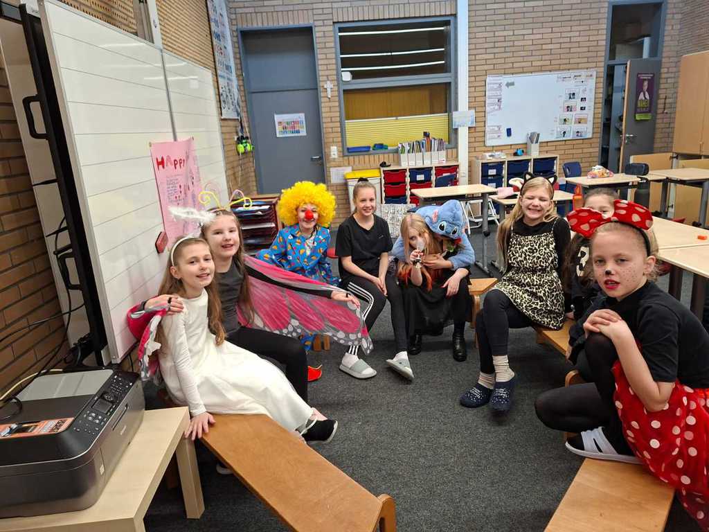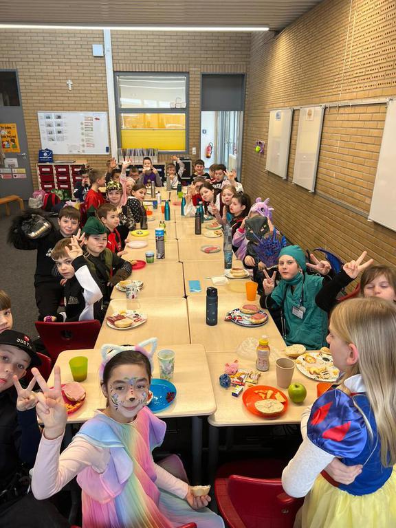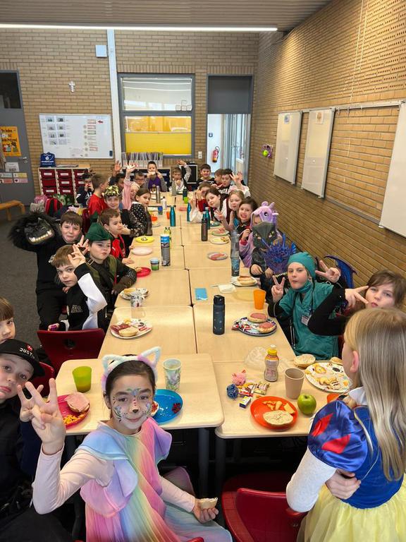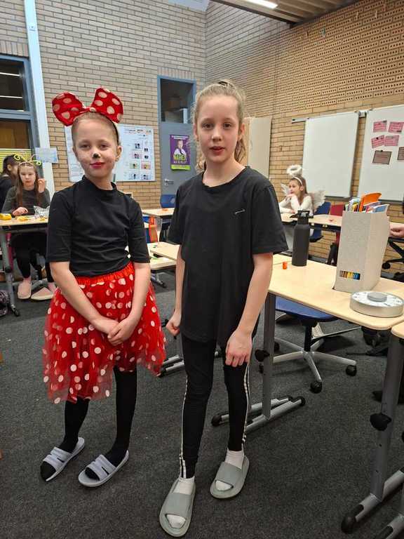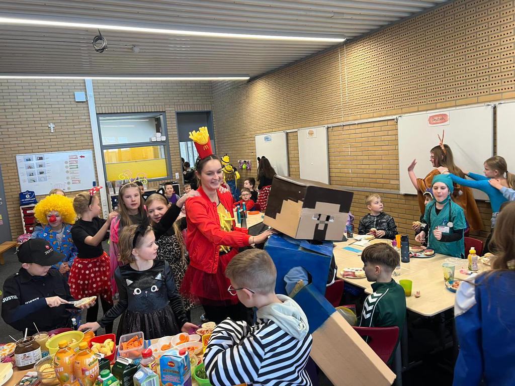Heute geht es bei uns richtig bunt zu! Unsere Schule verwandelt sich in ein fröhliches Farbenmeer, denn wir feiern gemeinsam Karneval!